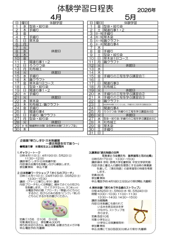 4月から5月までの各種体験教室の日程表317号を更新しました。こちらのページからダウンロードできます。
