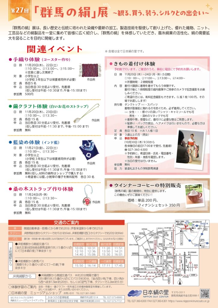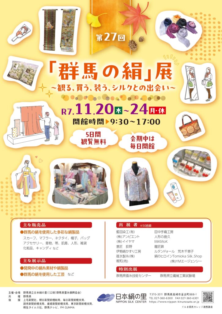 第27回「群馬の絹展」が本日最終日です。本日は観覧料無料です。この機会に、ぜひご来館ください。